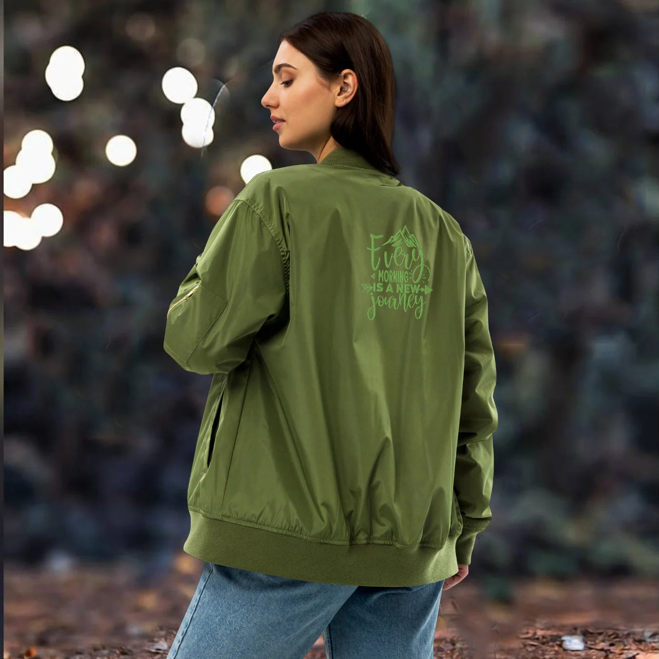 Every Morning Is A New Journey Embroidered Premium Recycled Bomber Jacket