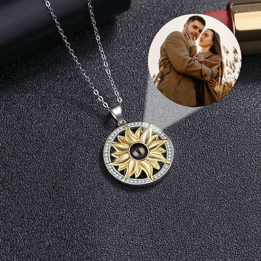 Custom Jewelry Sun Flower Pendant Photo Projection Necklace