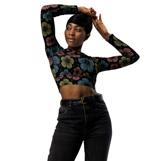 Clean Floral Vibes Recycled Long-sleeve Crop Top