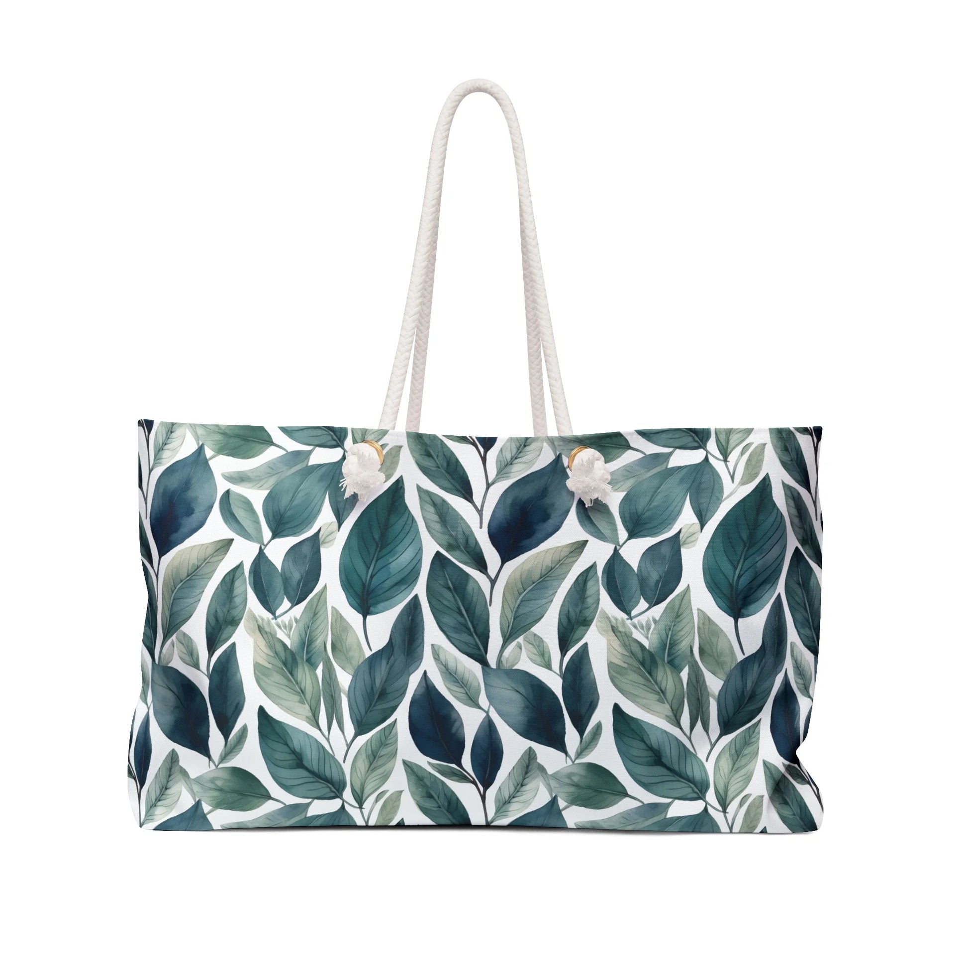 Experience elegance and practicality with the Sleek Foliage Weekender Bag. Its wide-mouth design and durable construction hold all your essentials for a weekend escape. Thick rope handles offer comfortable carrying, while the lush, leafy prints add a touch of sophistication. Elevate your travel game with this modern and stylish tote.